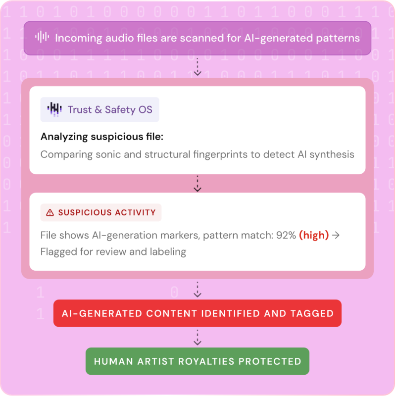 Das Tool von Beatdapp ist eine daten- und KI-gestützte Plattform zur Analyse und Sicherung von Musik-Streaming-Daten. Sie erkennt ungewöhnliche Nutzungsmuster wie Bot-Streams oder manipulierte Playlists und hilft Streamingdiensten, Labels und Distributoren dabei, betrügerische Aktivitäten zu identifizieren. Dies kann dazu beitragen, dass Streamingzahlen und Tantiemen fair und verlässlich berechnet werden können.