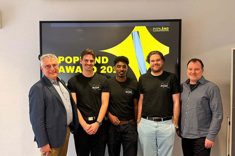 Students Tim Fischböck, Simon Kidane, and Johann Fürstenberg presented their concept for the further development of the Popländ Award at the Baden-Württemberg Ministry of Science, Research _ _ _